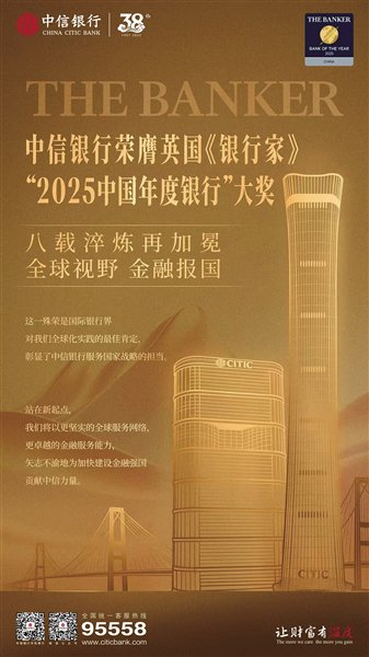 此次获奖是中信银行在复杂经营环境下坚持战略转型、深化经营管理的成果体现。该行始终坚守服务实体经济的根本宗旨,将高质量发展路径深度融入金融强国建设大局,在构建现代金融体系的进程中践行国有银行使命,通过系统性布局与创新性实践,持续推动金融服务实体经济实现质的有效提升和量的合理增长。截至2025年三季度末,中信银行资产总额98981.28亿元,不良贷款率1.16%,资产质量持续稳健;2025年1~9月,实现营业收入1565.98亿元,净利润533.91亿元,盈利能力保持稳定。据明晟(MSCI)2025年9月发布的ESG评级,中信银行跃升至全球最佳AAA级。