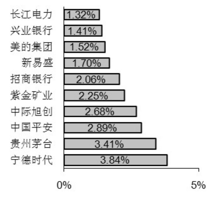 宁德时代 367.26 -1.59% 3.84% 宁德时代 367.26 -1.59% 2.80% 农业银行 7.68 -2.97% 3.90% 贵州茅台 1377.18 -3.44% 4.25% 航天电子 21.32 94.35% 0.99%