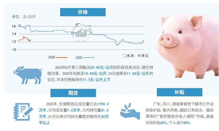 观察人士认为:生猪养殖主要有两大风险,一是疫情,二是价格。在现有政策性保险保障的基础上,再将价格险给予适当补贴,养猪户投保意愿更高,生猪养殖趋于理性,不“追涨杀跌”,市场不会大起大落,养猪户、险企实现双赢 □ 本报记者 都亚男 回望2025年的猪价走势,养殖70来万头生猪的钱友福(化名)深有感触,他形容猪价像坐上了“过山车”,不过是一路往下俯冲。眼瞅着猪价一路猛跌,钱友福忙给猪买上“保险”来护本。 给猪上“身价险”,是赚还是赔?在猪周期谷底,险企也很受伤,重重矛盾之下,如何共赢?猪少价高伤民,猪多价低伤农。“共赢”难题之下,藏着平抑猪周期的关键。 猪价跌跌跌 2025年,猪价呈现“前高后低、旺季不旺”的特点。自2024年8月第三周触及20.92元/公斤的阶段性高点后,猪价持续回落,2025年初跌至15.98元/公斤,10月底更是探至11.25元/公斤的低位,较前期高点近乎腰斩,后续直至12月底,始终在低位震荡,年末价格维持在11.7元/公斤上下。 步入2026年,猪价虽有小幅回暖,但1月下旬以来猪价出现震荡下滑,行业整体仍深陷亏损泥潭。中邮证券指出,猪价或尚未触底,亏损预期还在继续强化。 “我2025年养猪还是亏的。”钱友福给记者算了算成本账,全年前5月猪苗价格每头在480元以上,叠加水电、人工、饲料等各项开支,当时成本已突破14.8元/公斤。而商品肉猪从断奶仔猪育肥至出栏需6个月周期,对应出栏时的低迷猪价来看,远不足以覆盖前期投入成本,亏损已成定局。 猪周期里,从业者很难独善其身。周期是供需矛盾导致的,小到每一粒饲料,大到每头仔猪,无不影响着猪价的涨跌、猪企的盈亏,反过来又会进一步加剧周期的波动。 钱友福这段话背后的困境便是,去年,仔猪苗价同步上演的“过山车”行情,经历了“涨跌涨”的新一轮价格周期,最高时涨到每头530余元,去年10月又降到每头200余元,而现在又回升至380元/头左右。 不止钱友福,生猪养殖行业里,以上市公司为代表的头部猪企2025年业绩也是一言难尽。2025年,牧原股份归母净利润预计超147亿元,温氏股份预计实现归母净利润超50亿元,立华股份预计归母净利润超5.5亿元,新五丰预计亏损至少7亿元,天域生物预计亏损至少8500万元。但不可回避的一点是,除天域生物尚不确定增速之外,其余4家上市猪企预计去年净利润均较2024年同比大幅下滑。 给猪上“身价险” 从业11年,钱友福经历过3轮“猪周期”,赚过,也赔过。困在猪周期里,利润的起伏不定,无疑成了钱友福等养猪人的一块心病。 历经行业多次“寒冬”后,钱友福给猪买上了“保险”。2025年6月,预判到下半年行情风险加剧,钱友福给每头猪购入人保财险“生猪综合收入保险”,“投保虽赚不到钱,但至少能保本。” 对于保险公司和猪企而言,价格保险合同是一场与市场“掰手腕”的博弈。事实也确实如钱友福所料,2025年下半年,猪价连连下跌。钱友福算了算,理赔后,平均一头猪减少亏损60块至80块钱,能帮着扛过低谷期。 “从出栏申报到理赔打款,通常3到15个工作日就能完成,基本能帮养殖户抹平完全成本。”人保财险临沂市分公司农险部经理杜汉军解释,“这个险种,精准直击养殖户最担忧的猪价波动痛点,让养殖户不做‘折本’生意。” “最起码企业能活下去。”钱友福这样说,家在鲁西南的生猪养殖户毕晓波(化名)也这样说,“先保证活下来,再想其他的。” 毕晓波的养殖场去年出栏量达3万头,他去年也给猪买上了“保险”,让他告别了“微亏”,“投保出栏的第一批,纯收益在每头50元到60元,还是盈利的。” 不同于钱友福的是,三年来,毕晓波一直是用生猪期货套期保值,给他的猪上了另一重“反向保险”。 “这不是投机”,毕晓波解释说,“因为我养殖的猪和我的期货盘面同步销售,通过做空看跌实现风险对冲。期货盘面如果下跌,期货端的盈利,可弥补现货端猪价下跌的损失,反之亦然。” 毕晓波有时会直接在期货盘面套保,有时也会选期货公司“一口价”的合作模式。2023年,他进行期货套保后补贴到养殖上,平均每头猪净赚100余元,若未套保,当时每头猪将亏损10余元。 期货套保在头部猪企中更为普及,牧原股份、神农集团、温氏股份等上市公司均有布局,投入资金规模从1亿元到8亿元不等。除了对冲风险,部分企业还通过期货实现额外盈利,例如,大北农2025年前10月已确认期货投资收益累计约1.19亿元,占上年度净利润的34.3%。 大连商品交易所数据显示,生猪期货上市五年来,生猪期货流动性稳步提升。2025年,生猪期货总成交量已达1799.3万手、日均成交量7.4万手、日均持仓量21.3万手,2025年11月以来日均持仓量稳定维持在30万手以上。 金融工具“护本”有门槛 金融工具“护本”,有一定门槛。 当前,我国生猪养殖行业规模化进程虽在加速,但个体养殖户出栏量占比仍超30%,这部分群体对金融工具的接纳度并不高。 一位保险业资深从业人士观察:“投保的群体还是以中大型企业为主。猪周期之下,个体养殖户投机心理比较强,时养时不养,养殖数量也较少,对价格波动敏感性相对没有这么高。但是大企业养殖量较大,一旦发生亏损比较有压力,所以投保积极性要高一些。” 对于普通个体养殖户来说,期货套保则更需要一定的资金门槛、认知门槛,并不是很多养猪人像毕晓波一样有运用金融工具的能力。 这种“冷热不均”现象的核心症结在于,双方存在巨大