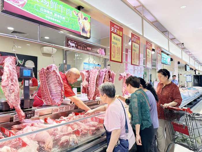 生猪价格走低持续影响养殖户。图为市民在超市选购猪肉。 西江日报记者 严炯明 摄