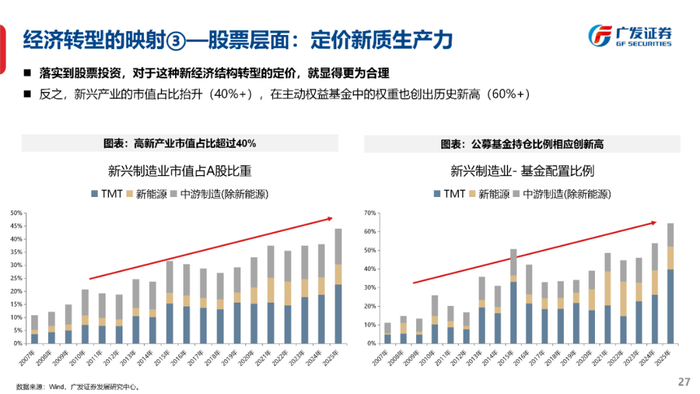 对此,广发证券指出,一系列数据显示,“三新产业”占GDP比重提升 → AH新兴产业上市公司收入/利润权重提升(科技+外需)→ AH市值新兴产业权重提升(基准)→ 机构持仓权重突破历史上限。因此,打破传统经验规律,站在新的发展阶段看待AI为主的科技股历史数据,或许能够摒弃噪音、抓住核心矛盾。