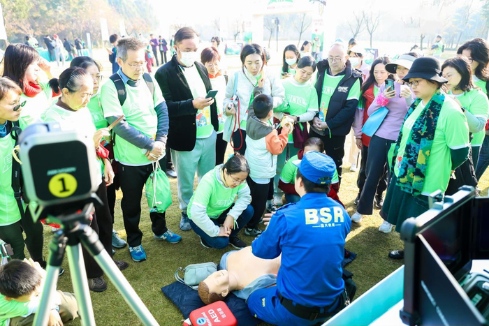 11月23日,安心家园上海站在顾村公园顺利开展。活动期间,组织开展了急救技能公开课,专业讲师通过模拟人实操演示,细致讲解心肺复苏(CPR)和AED(自动体外除颤器)使用技巧。“按压深度至少5厘米,频率保持在每分钟100-120次”,市民们围着讲师认真记录,不少亲子家庭更是轮番上阵实操练习。现场设置的“急救闯关”互动区前排起长队,参与者通过模拟急救场景完成任务,即可获得定制纪念徽章。4公里公益徒步沿途设置的补给站不仅提供能量支持,更安排了急救志愿者随时待命,将“安心守护”的理念落到实处。