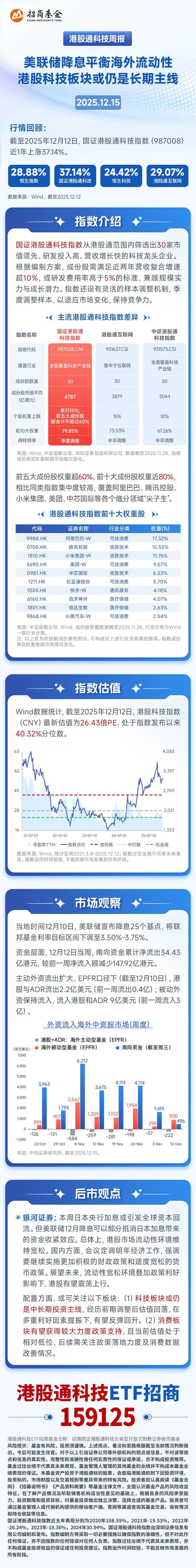 银河证券指出,本周日本央行加息或引发全球资本回流。但美联储12月降息可以部分抵消日本加息带来的资金收紧效应。总体上,港股市场流动性环境维持宽松。国内方面,会议定调明年经济工作,强调要继续实施更加积极的财政政策和适度宽松的货币政策。展望未来,流动性宽松环境叠加政策利好影响下,港股有望震荡上行。