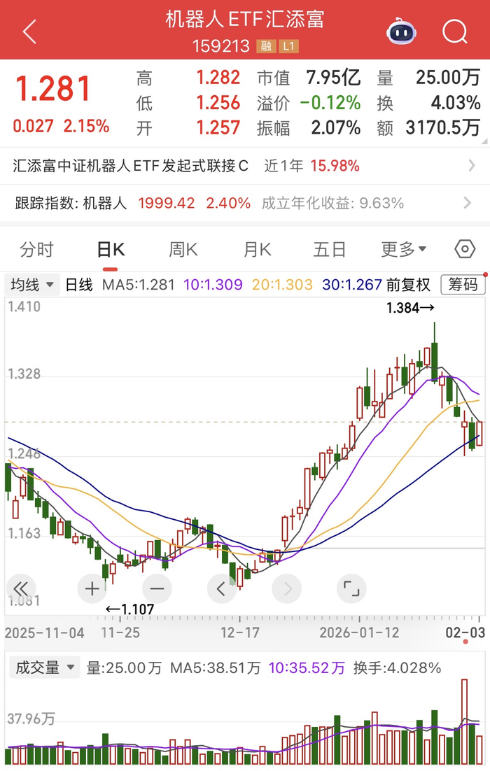 2月3日,市场反弹,机器人板块走强。截至 14:15,机器人ETF汇添富(159213)涨2.15%,成交额超 3200 万元;成分股科瑞技术涨停,中控技术涨超7%,大族激光涨超6%,丰立智能、步科股份、中信重工等纷纷大涨。