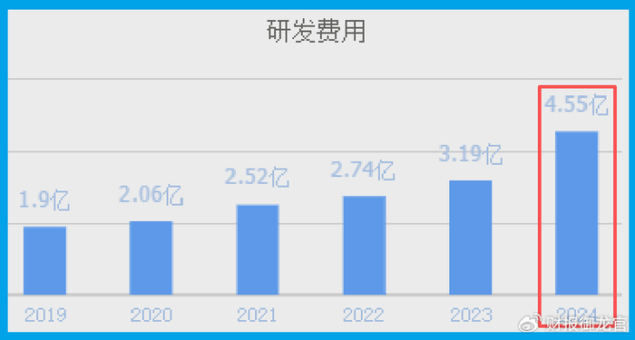 公司研发费用持续攀升,2024年以4.55亿元创下历史新高。