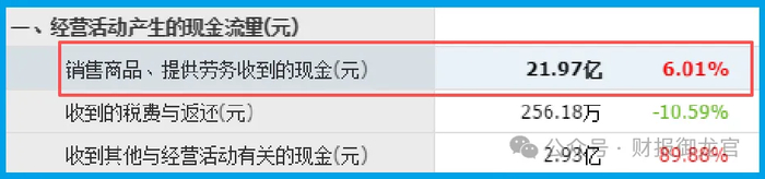 再看现金流:公司销售商品、提供劳务收到的现金总额达21.97亿元,同比增长6.01%。