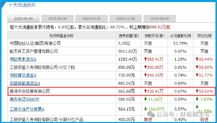 然而,市场的“聪明钱”却给出了截然不同的判断。代表北向资金的香港中央结算有限公司,在第三季度大举加仓,增持比例高达52%。