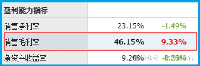 增长虽慢,但公司的“体质”却异常健康。首先看盈利能力:销售毛利率高达46.15%,同比显著提升9.33%。