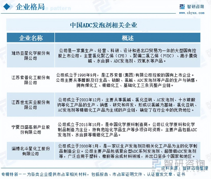 注:本文节选出自智研咨询发布的《研判2025!中国ADC发泡剂行业产业链、发展现状、竞争格局及未来前景展望:环保政策趋严,行业集中度进一步提高[图]》行业分析文章,如需获取行业文章全部内容,可进入智研咨询官网搜索查看。