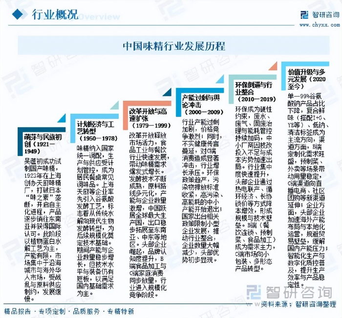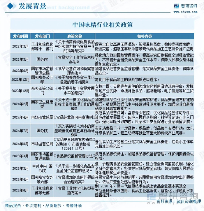 注:本文节选出自智研咨询发布的《研判2025!中国味精生产工艺、发展历程、市场政策、产业链图谱、供需现状、进出口贸易、竞争格局及发展趋势分析:阜丰集团、梅花生物稳居第一梯队[图]》行业分析文章,如需获取行业文章全部内容,可进入智研咨询官网搜索查看。