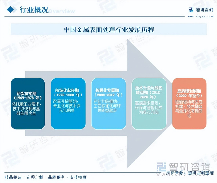注:本文节选出自智研咨询发布的《研判2025!中国金属表面处理行业发展历程、市场政策、产业链图谱、市场规模、竞争格局及发展趋势分析:行业整体呈现“大市场、小企业”的分散格局[图]》行业分析文章,如需获取行业文章全部内容,可进入智研咨询官网搜索查看。