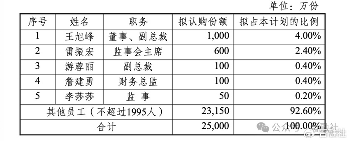 值得注意的是,公司监事会主席雷振宏和监事李莎莎计划参与本次员工持股计划,分别持有2.4%、0.2%的份额。其中,占比最高的份额92.6%由不超过1995人的其他核心员工持有,体现了激励向一线骨干倾斜的原则。