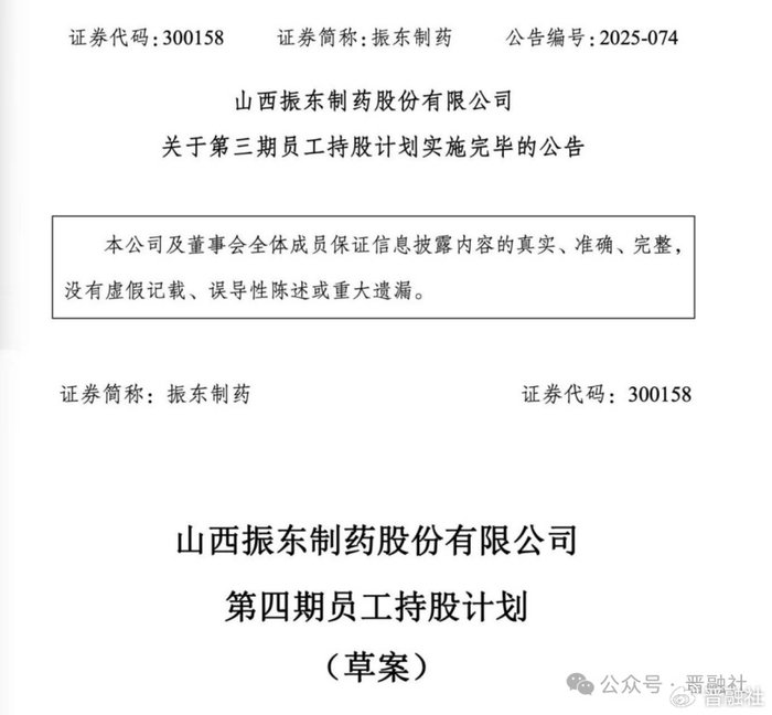 11月20日,山西振东制药股份有限公司(以下简称“振东制药”)发布公告,宣布第三期员工持股计划已实施完毕,并同步披露第四期员工持股计划(草案)摘要。