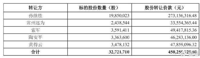 其中,孙继胜套现2.73亿,常州远为套现3355万元,索军套现4942万元,陶安平套现4628万元,黄得云套现4786万元,一共转让13.67%股权。