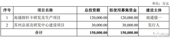 强一股份计划募资15亿元,其中,12亿元用于南通探针卡研发及生产项目,3亿元用于苏州总部及研发中心建设项目。