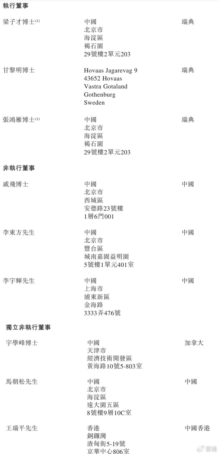 瑞博生物执行董事分别为梁子才博士、甘黎明博士、张鸿雁博士;非执行董事分别为戚飞博士、李东方、李宇辉;独立非执行董事分别为宇学峰博士、马朝松、王瑞平。