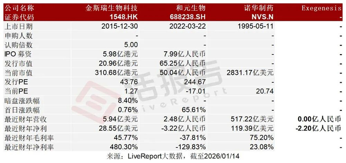 金斯瑞生物科技(1548.HK)、和元生物(688238.SH)、诺华制药(NVS.N)