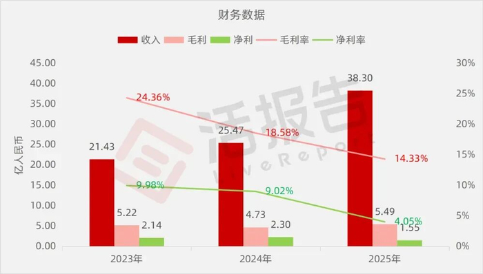 收入分别约为人民币21.43亿、25.47亿、38.30亿,2025年同比+50.39%;