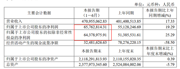 此外,公司在半年报中披露去年同期扣非净利润为6576万元。但据《财中设》发现,去年半年度及2024年一季度和二季度相加总所得扣非净利润均为6438万元。此前,公司曾更正过2024年三季报的扣非净利润。
