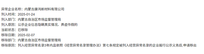 另一家子公司康鸿新材,在2024年建筑企业公示信息核查中,被内蒙古市监局认定年度报告公示信息“隐瞒真实情况弄虚作假”,这一行为同样反映出公司在下属企业合规管理上的薄弱环节。
