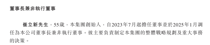 首先,在最基础的信息披露环节便出现了明显矛盾。创新实业2025年7月二次递表后更新的招股书,披露实控人崔立新的年龄为55岁,但创新新材2025年4月发布的年度报告中,明确披露崔立新的年龄为56岁。