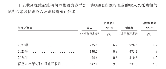 招股书披露的财务数据,清晰勾勒出这种依赖的深度——2023年,创新实业实现总收入138.2亿元,其中108.9亿元来自创新新材,占比高达78.8%;2024年公司总收入增长至151.6亿元,来自该关联方的收入同步增至116.1亿元,占比仍维持在76.6%的高位;即便是2025年1-5月,这一比例虽有所回落,但仍达59.8%,43.2亿元的收入源自创新新材。