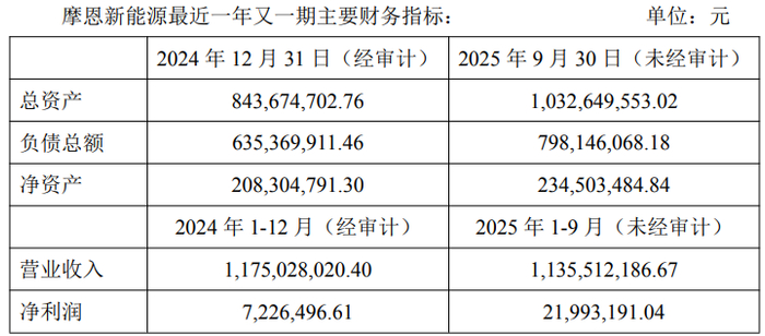 此次交易构成关联交易,因摩恩新能源为公司与实际控制人问泽鸿共同投资的公司。根据公告,摩恩新能源的主要财务指标显示如下: