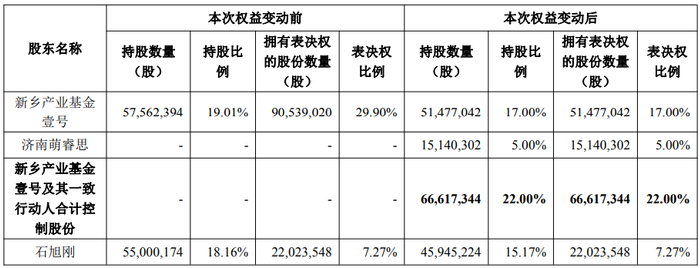 同时,济南萌睿思科技合伙企业与石旭刚、新乡产业基金壹号签署《股份转让协议》,拟受让合计持有的公司1514万股股份,占公司总股本的5.00%。
