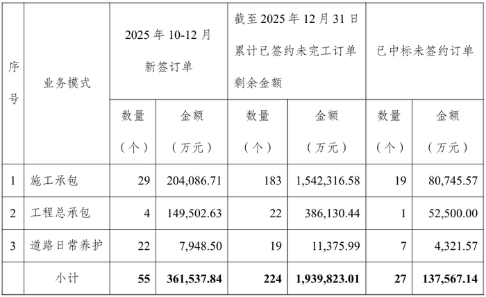 1月28日,天健集团(000090)发布公告,2025年第四季度公司建筑业经营情况简报。公告中提到,2025年10月至12月公司新签订单数量为55个,金额为36.15亿元。