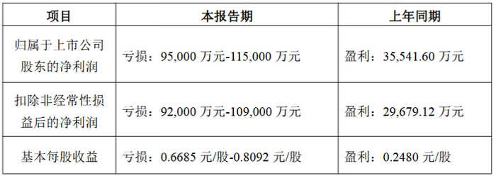 1月30日,唐人神(002567)发布公告,公司预计2025年归母净亏损9.5亿元至11.5亿元,较去年同期盈利3.55亿元相比,将出现亏损,具体数据如下: