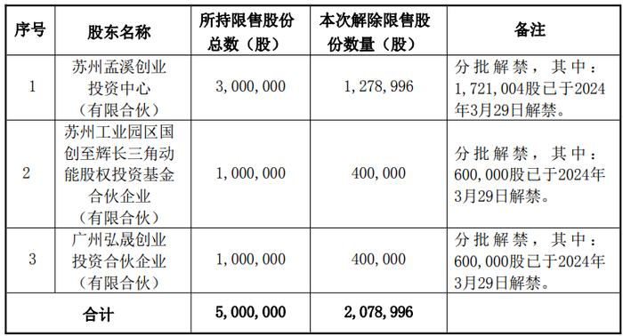 3月24日,未来电器(301386)发布公告,解除限售的股份为公司部分首次公开发行前已发行股份,本次解除限售的股东户数共计3户,解除限售的股份数量为208万股,占公司总股本的1.49%。解除限售股份上市流通日期为2026年3月30日。