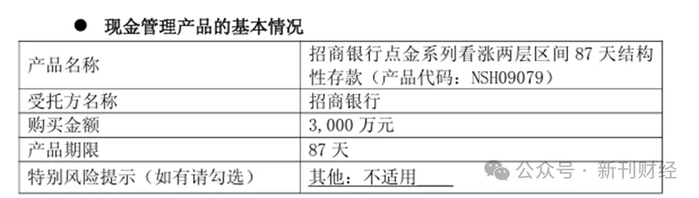 从实际理财成效来看,其收益率处于相对审慎水平。例如,今年8月底赎回的一笔招商银行5000万元存款,持有87天实现收益23.42万元,折算年化收益率为1.7%。