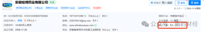 同样值得审视的是产品实际生产方——安徽哈博药业有限公司的资质背景。该公司成立于2008年,由个人全资控股,公开信息显示其参保员工仅8人,其经营范围包含软胶囊剂、中药饮片及保健食品。从经营风险角度看,公开信息显示该公司涉法律诉讼案件达33起,其中涉及3起加工合同纠纷。