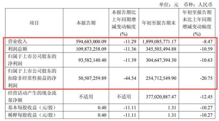 曾经顶着“医美茅”光环、创下千亿市值的明星企业爱美客,最新公布的三季报,是这样的: