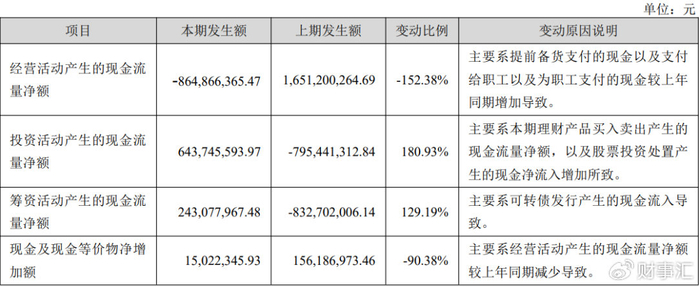 财务数据显示,公司现金流状况已连续多个季度恶化。2025年一季度经营活动现金流净额为-2.88亿元,二季度进一步扩大至-11.32亿元,尽管三季度略有收窄至-8.65亿元,但还是与2024年同期16.51亿元的净流入形成鲜明对比。截至2025年9月末,公司现金及现金等价物净增额仅1502.23万元,流动性压力可见一斑。