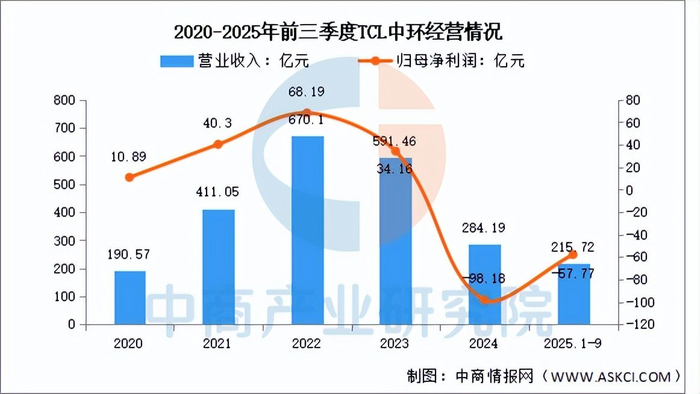 2025年前三季度实现营业收入215.72亿元,同比下降4.47%;归母净利润亏损57.77亿元。2025年上半年主营产品包括光伏硅片、光伏组件,营收分别占整体的43.12%、28.70%。