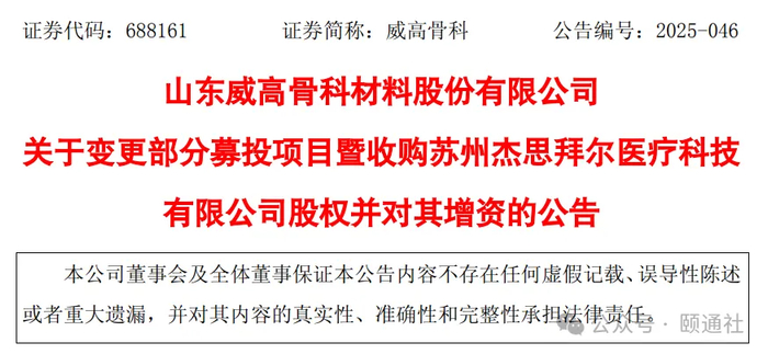 近日,威高骨科(688161.SH)公告,拟变更未使用部分募集资金8646万元,收购苏州杰思拜尔医疗科技有限公司部分股权并同步增资,交易完成后,共持有杰思拜尔55%股权,杰思拜尔成为其控股子公司。