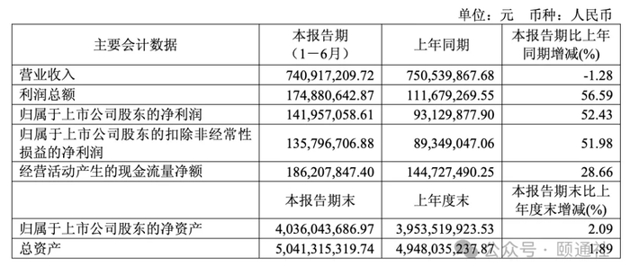 今年半年报数据显示,上半年营业收入7.41亿元,同比微降1.28%;归母净利润1.42亿元,同比大幅增长52.43%,核心得益于销售费用优化与规模效应释放。