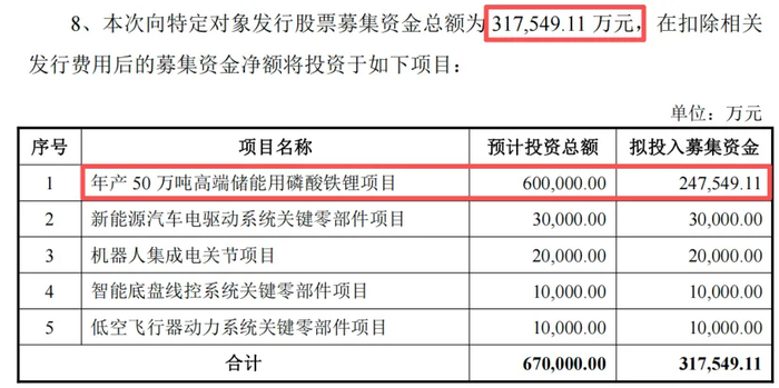 更为优厚的是,宁德时代将原本25.63亿元增资江西升华的计划,改为直接以31.75亿元认购富临精工的定增,成为其战略投资者。定增募投项目之一便是年产50万吨高端储能用磷酸铁锂项目。
