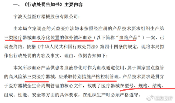 让天益医疗这次栽跟头的,是血液净化装置的体外循环血路,就是肾病患者做透析时的“血液通道”,属于国家重点盯防的三类医疗器械。