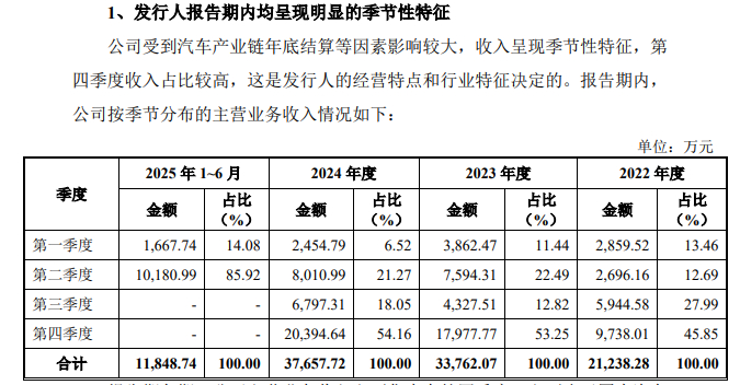 此外,公司收入季节性波动也加剧了业绩不稳定性。2022年至2024年,易思维第四季度销售收入占比持续攀升,分别达45.23%、52.09%、53.84%,2023年起超五成收入集中于第四季度。
