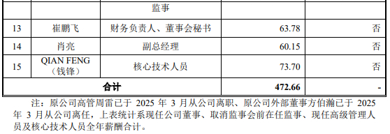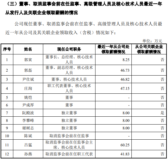 据招股书披露,2024年郭寅从公司领取的年薪仅8.25万元,且未从关联企业获得任何薪酬,这一金额不仅远低于三位联合创始人(年薪均超46万元)及公司其他核心技术人员,更与同行业可比公司高管薪酬差距悬殊——据年报披露,凌云光董事长姚毅2024年年薪81.7万、海康威视董事长胡扬忠215.53万元、奥普特董事长卢胜年70万元,郭寅的年薪不足同行十分之一。