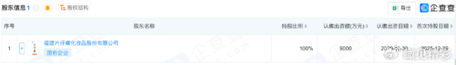 这一布局早有伏笔。企查查信息显示,片仔癀大健康正是由福建片仔癀化妆品有限公司于2025年12月29日斥资9000万元在北京设立。