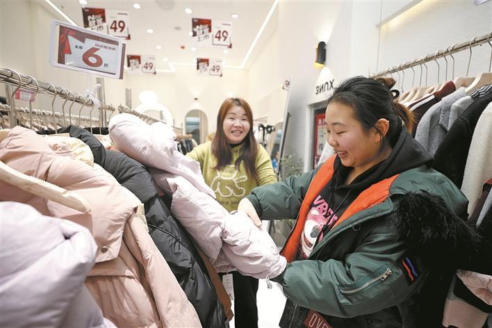 闫晓宇在商场挑选服装(摄于2025年1月1日)。从“围着灶台转”到“围着机器转”,闫晓宇收获了自信,对生活有了更多热爱和追求。