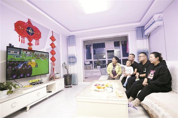 晚饭后,围坐在客厅里看电视的闫晓宇一家人(摄于2025年1月3日)。就业稳定、收入又有保障,闫晓宇一家的生活品质不断提升,家里现代化的家具家电一应俱全。