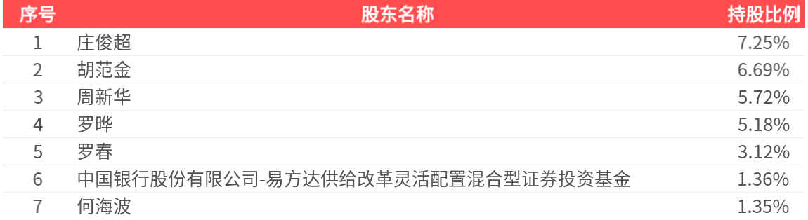 公司股东户数为1.84万户,前七大股东持股数量为1.24亿股,占总股本比例为30.67%,前十大股东持股情况如下: