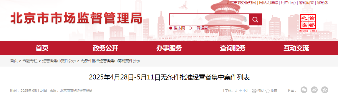 2025年4月28日-5月11日无条件批准经营者集中案件列表
