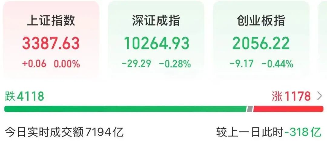 截至上午收盘,上证指数接近平盘报收,深证成指下跌0.28%,创业板指下跌0.44%。
