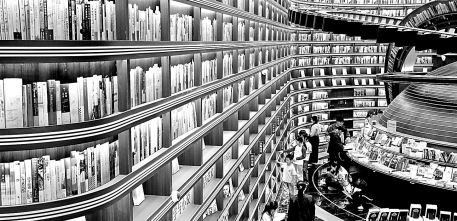 江苏淮安钟书阁设计科技感十足,市民徜徉梦幻书海。光明图片/视觉中国