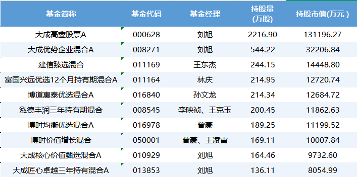 前十大持仓基金一览表
